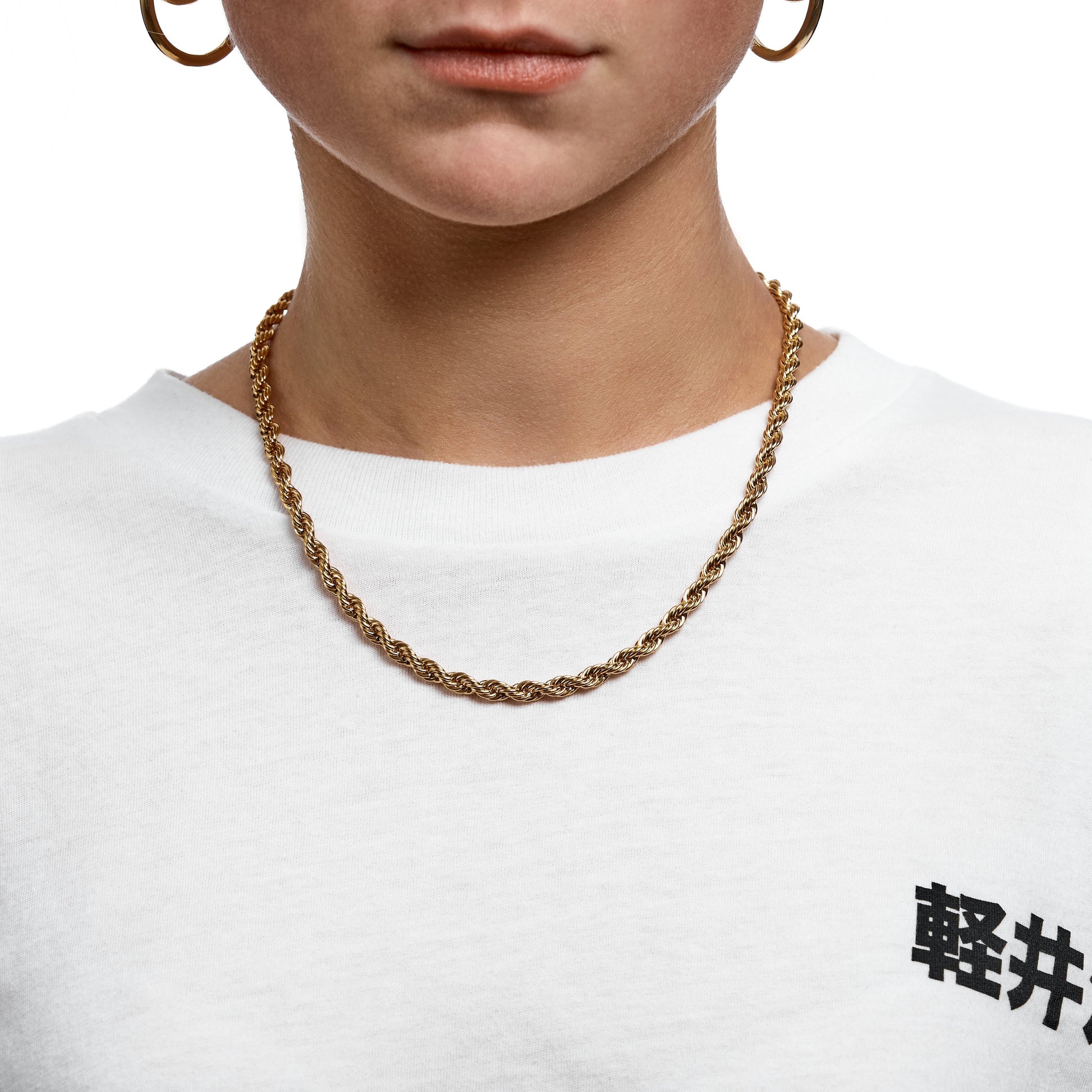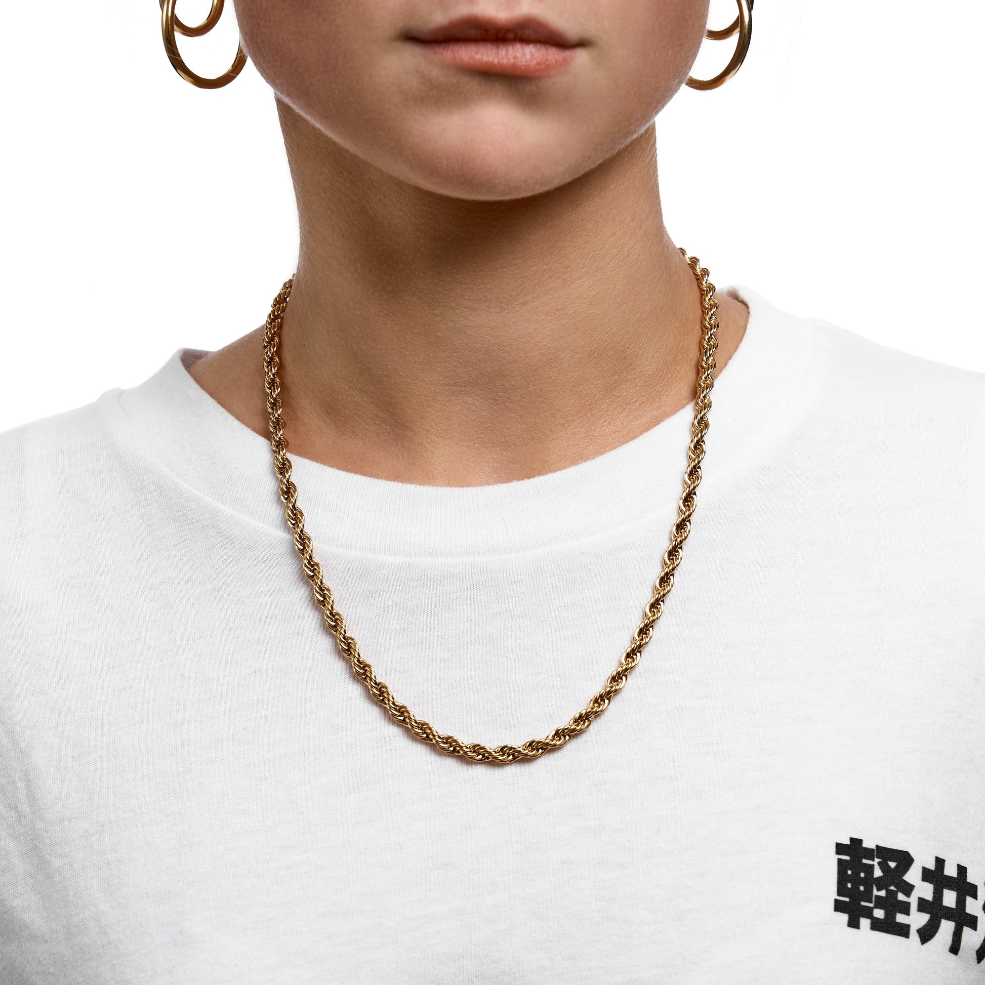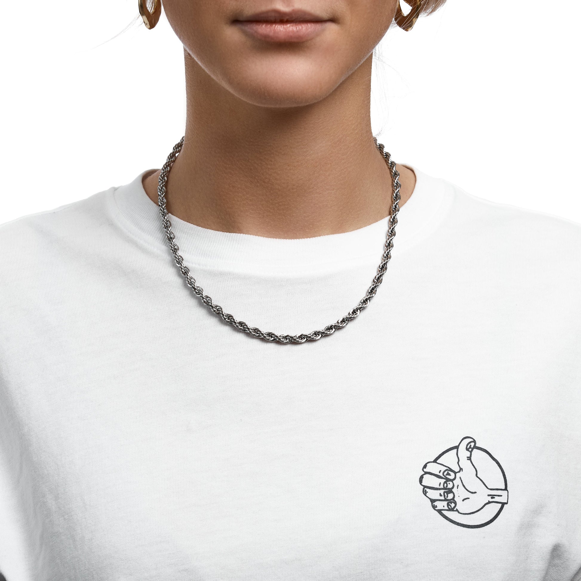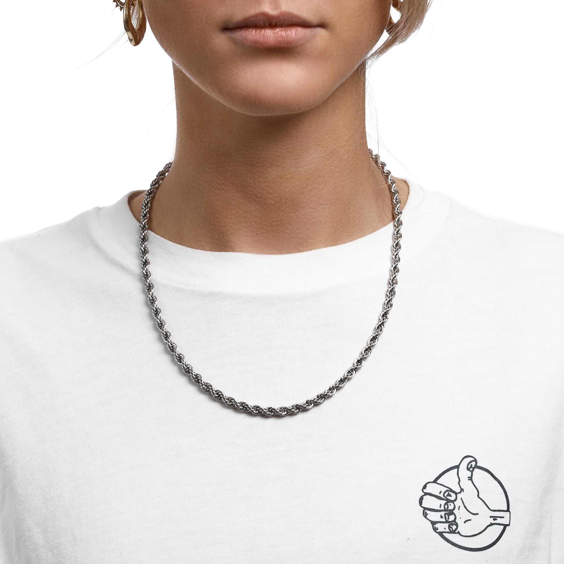 The Cloé chain can be worn as a standalone piece but also looks good when layered up with other chains.